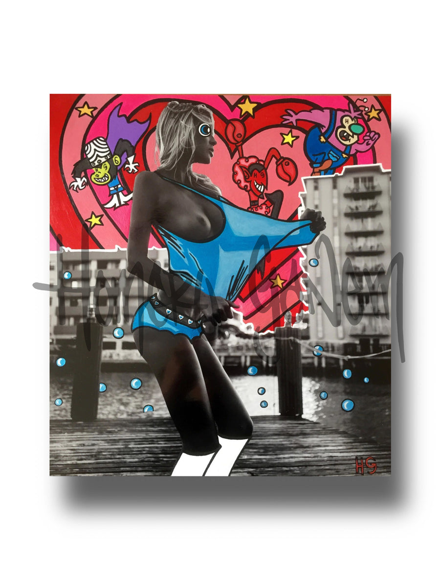 Colombian artist, Homero Ganem a.k.a. HG, has developed a unique style where his brush meets his photography. By collaborating imagery with his free hand artwork, he creates an intercommunication that speaks volumesdemonstrating a story line that embodies real life with fiction.